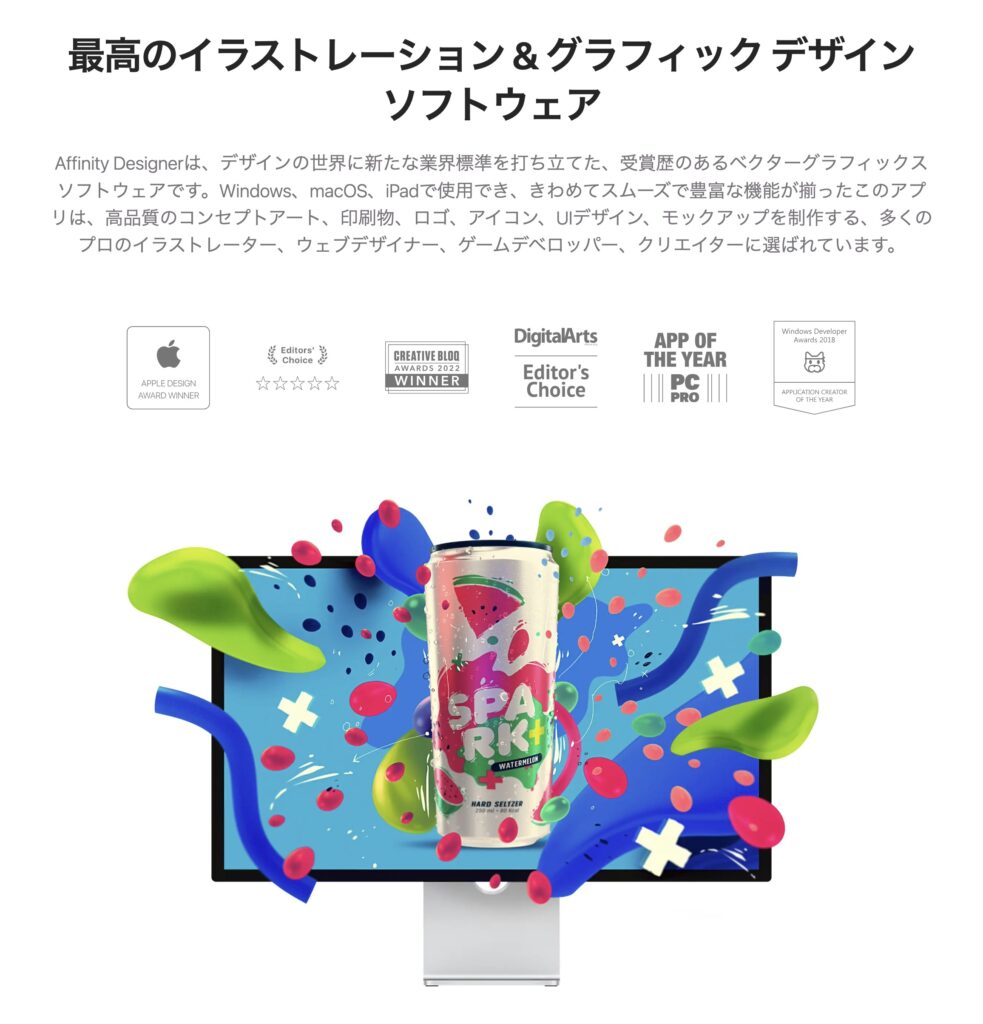 仕事ではIllustrator が必須になる場面がまだ多いですが、コストパフォーマンスが高めなので個人で使ったり小規模で扱うならおすすめであります。