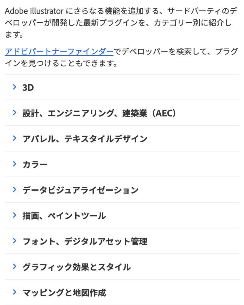Adobeホームページで載せているプラグインはこちらからhttps://helpx.adobe.com/jp/illustrator/plug-ins.html#